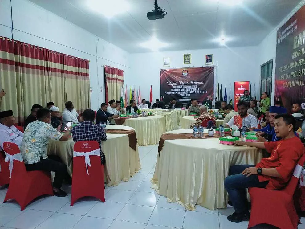 NAMROLE, MEDIAINDONESIANEWS.ID – Komisi Pemilihan Umum (KPU) Kabupaten Buru Selatan menggelar rapat pleno terbuka untuk penetapan pasangan calon (paslon) Bupati dan Wakil Bupati Buru Selatan terpilih dalam Pilkada 2024, pasca keputusan Mahkamah Konstitusi (MK) yang menolak gugatan Perselisihan Hasil Pemilihan Umum Bupati (PHPU Bup) Buru Selatan dengan pemohon Pasangan Calon (Paslon) Bupati dan Wakil Bupati Buru Selatan nomor urut 03 Hj Safitri Malik Soulisa dan Hemfri Lesnussa (SAH).